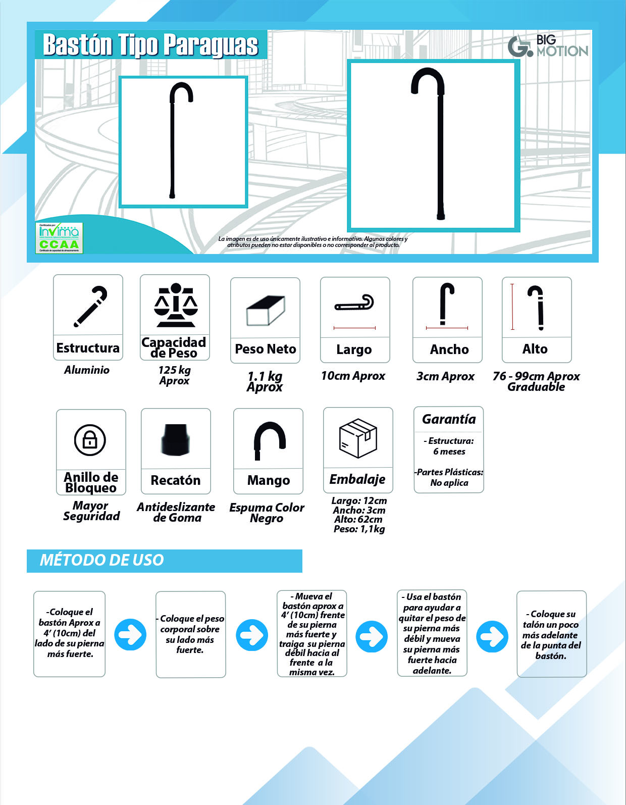 ENVÍOS A TODA COLOMBIA.Bastón mango en forma de “T” en estructura de...