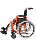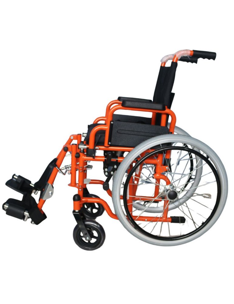 Silla de ruedas manual pediátrica AZEL, liviana, plegable y resistente. Soporta hasta 75 kg e incluye descansabrazos abatibles, descansapiés desmontables y cinturón de seguridad para mayor comodidad y estabilidad en el uso diario.