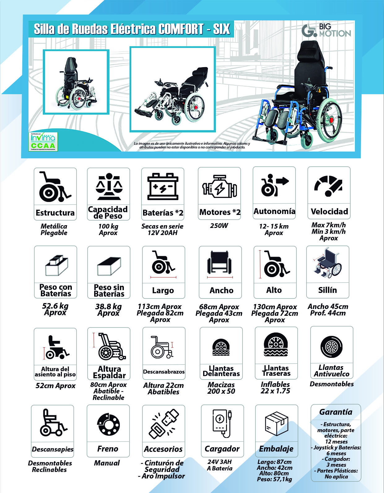 ENVÍOS A TODA COLOMBIA.Silla de ruedas con reclinación eléctrica de espaldar...