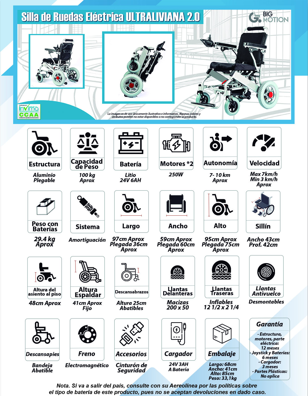 Nota. Si va a salir del país, consulte con su Aerolínea por las políticas sobre el tipo de batería de este producto, pues no se aceptan devoluciones en dado caso.