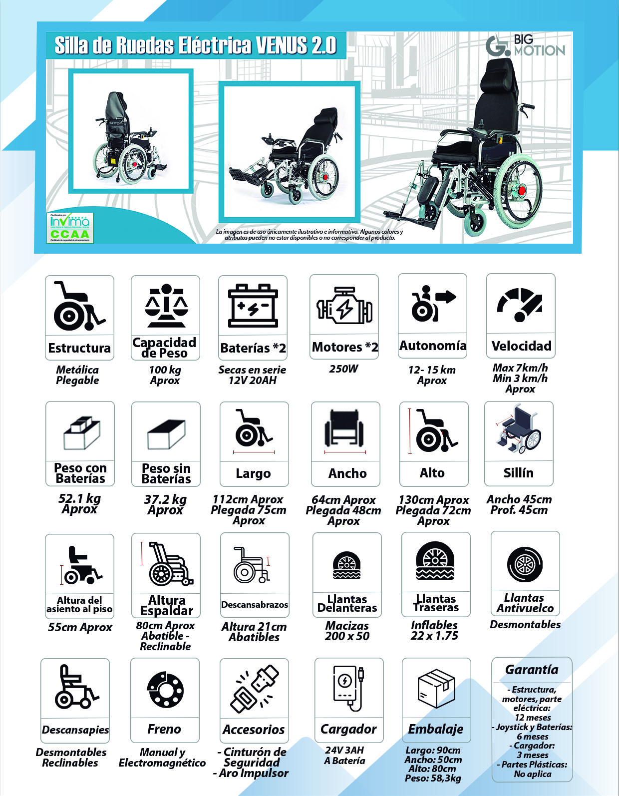 ESTRUCTURA / MOTORES / PARTE ELÉCTRICA: 1 Año (12 Meses)
