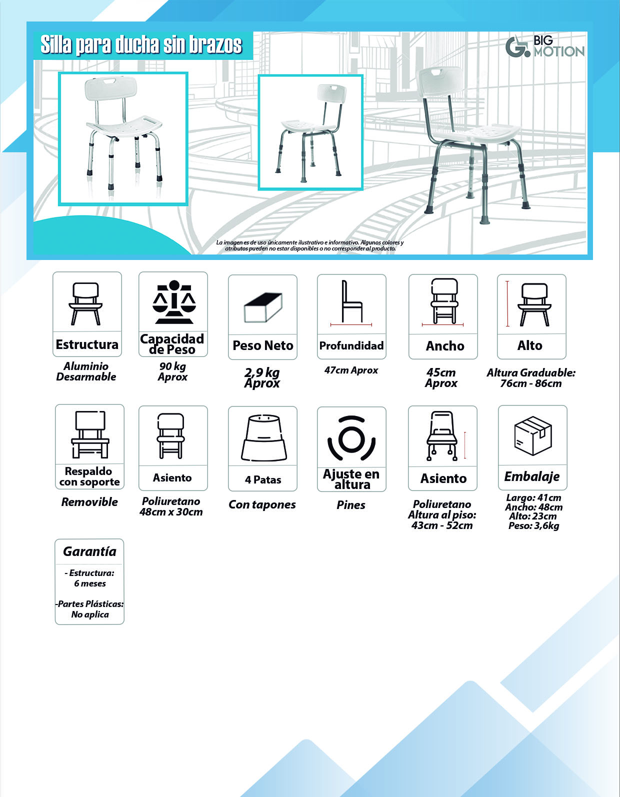 ENVÍOS A TODA COLOMBIA.Silla para ducha con apoyabrazos en estructura...